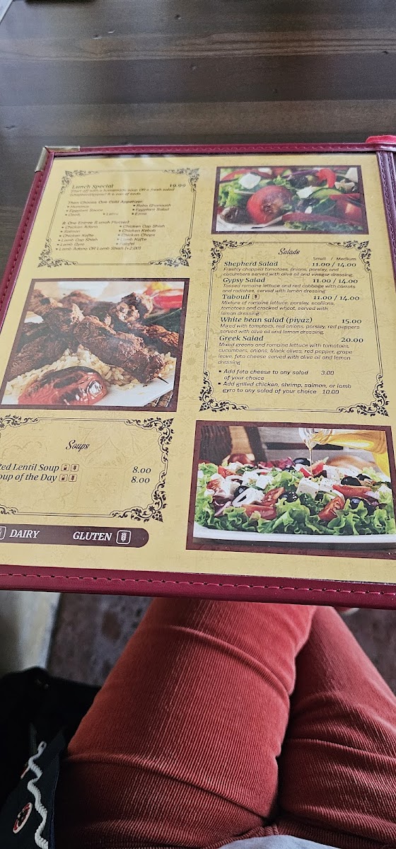 Right away, you’ll notice a mix of familiar favorites and traditional specialties. There are warm, fluffy pita breads paired with creamy dips, crisp salads bright with lemon and herbs, and generous plates layered with perfectly seasoned chicken, lamb, or beef. Then come the rich stews and fragrant rice dishes, each one packed with depth and just enough spice to keep things interesting.